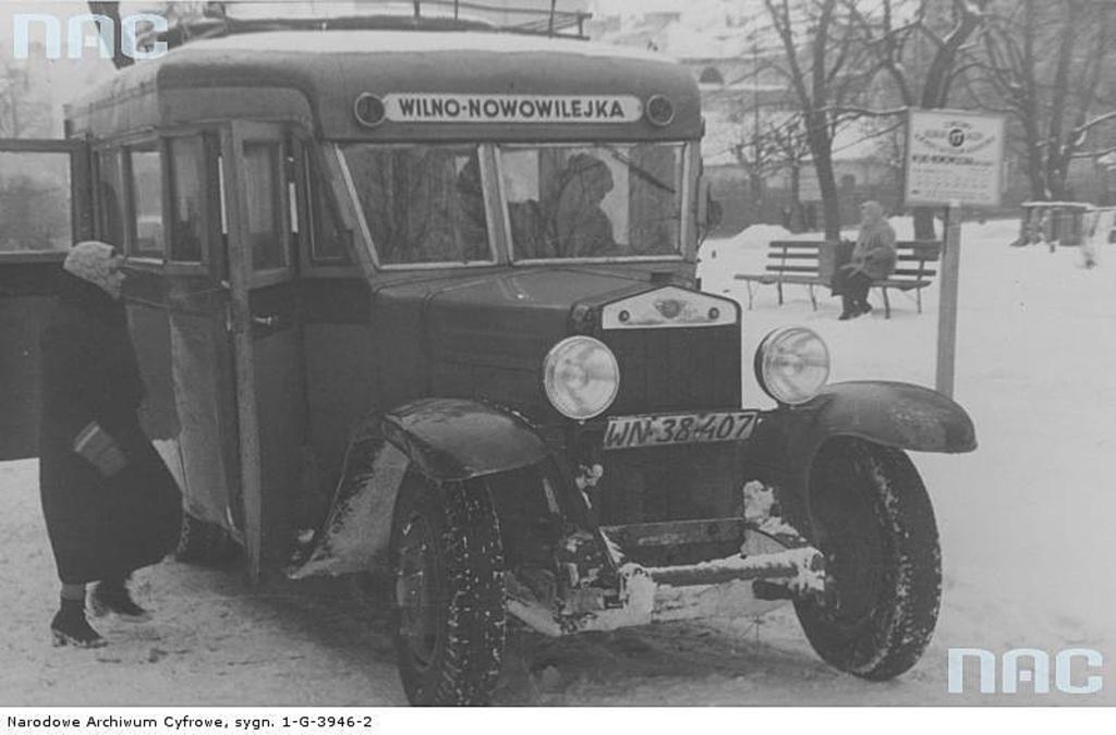 Autobus kursujący na linii Wilno-Nowilejka stojący na dworcu.