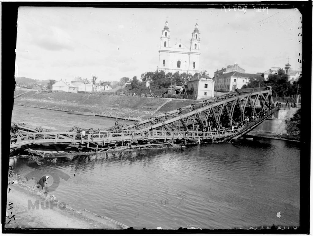 1944 m. liepos 7 d. vokiečių susprogdintas Žaliasis tiltas per Nerį. Fot. Jan Bułhak, 1944 m. liepa-rugpjūtis