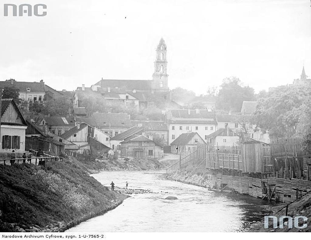Fragment dzielnicy Safianiki nad rzeką Wilenką. Domy biedoty przy ul. Praczkarskiej. W głębi widoczny kościół p.w. Matki Boskiej Pocieszenia (dawny Augustianów).