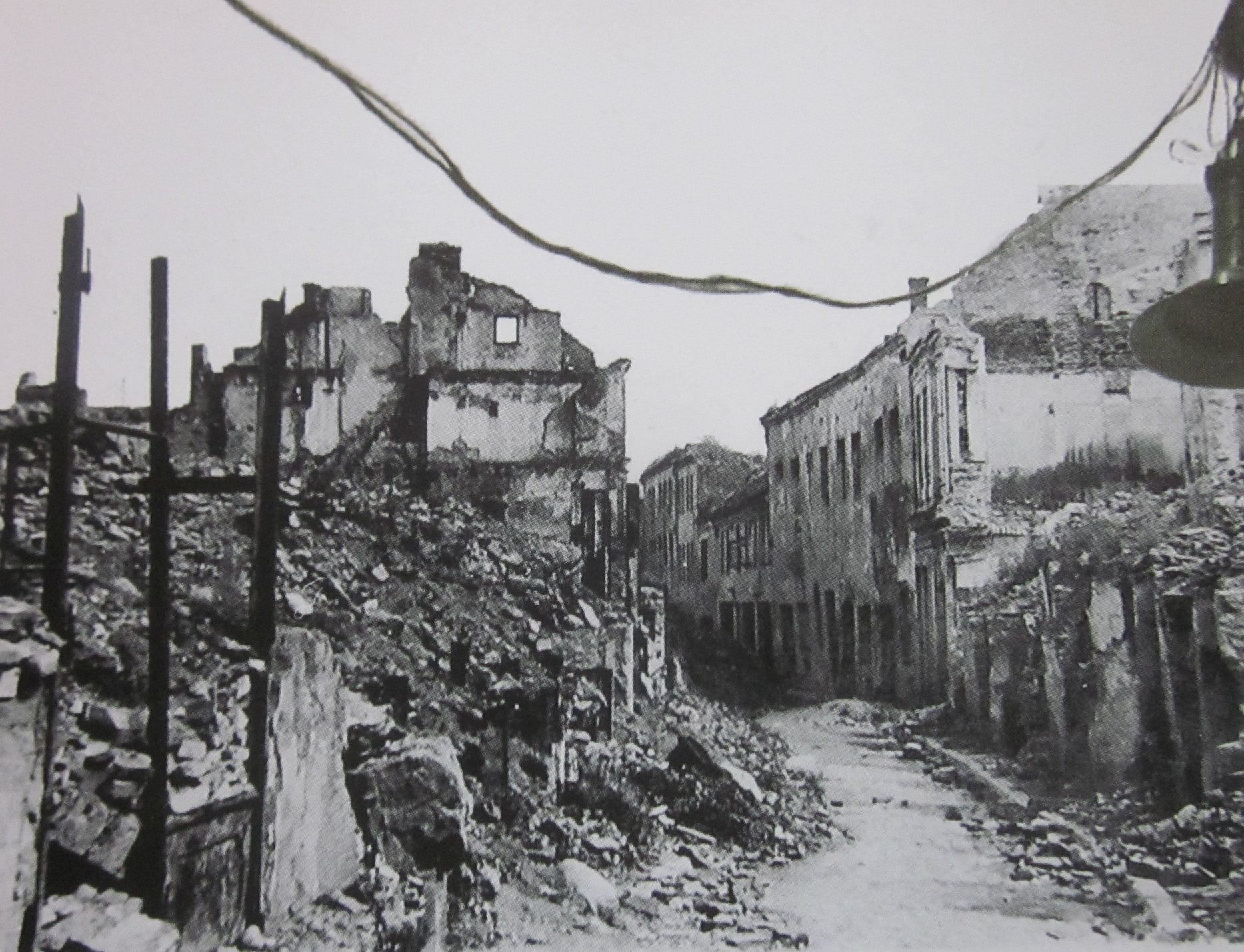 M.Antokolskio gatvė iš Vokiečių gatvės pusės. Tolumoje sugriuvusi "siauroji" arką. Marko Antokolskio namas dešinėje sovietmečiu atstatytas, visa kita nugriauta. XX a. 6-ojo dešimtmečio pirma pusė