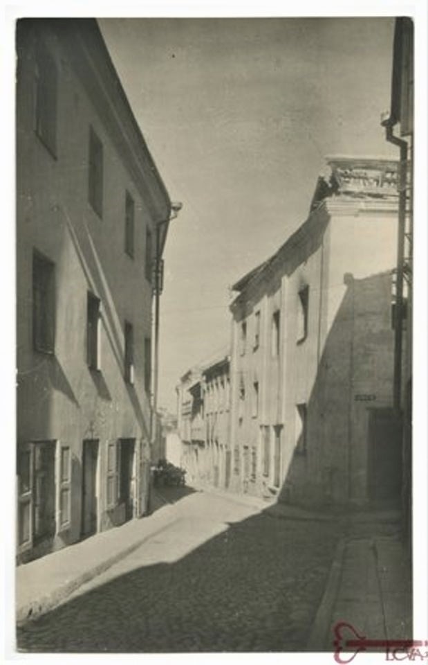 Gaono gatvė. 1944 m. po karo. Dešinėje esantys kvartalo namai sovietmečiu nugriauti. Fot. J. Bulhak.