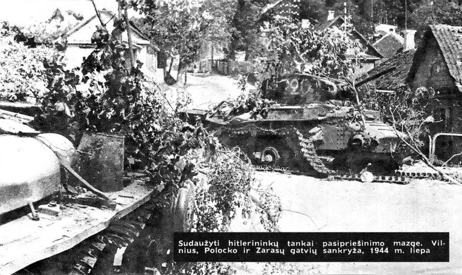 Parašas po nuotrauka rodo, kaip sovietai falsifikavo Antrojo pasaulinio karo istoriją. Vokiečiai Vilniuje tankų apskritai neturėjo. Nuotraukoje pamušti Raudonosios armijos 3-iojo gvardijos mechanizuoto korpuso anglų tankai "Valentine" (pagaminti Kanadoje). Šiuos tankus sovietams tiekė JAV pagal lendlizo programą. Prieš Vilniaus operaciją 90% 3-iojo gv. mech. korpuso sudarė lendliziniai tankai: amerikiečių M4-A2 ("Sherman"), MK-9 ir MK-10 ("Valentine).