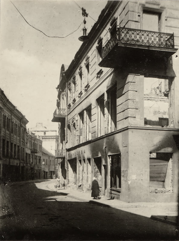 Vilnius. Vokiečių ir M. Antokolskio gatvių sankryža. 1944 m. Fot. Janas Bulhakas.