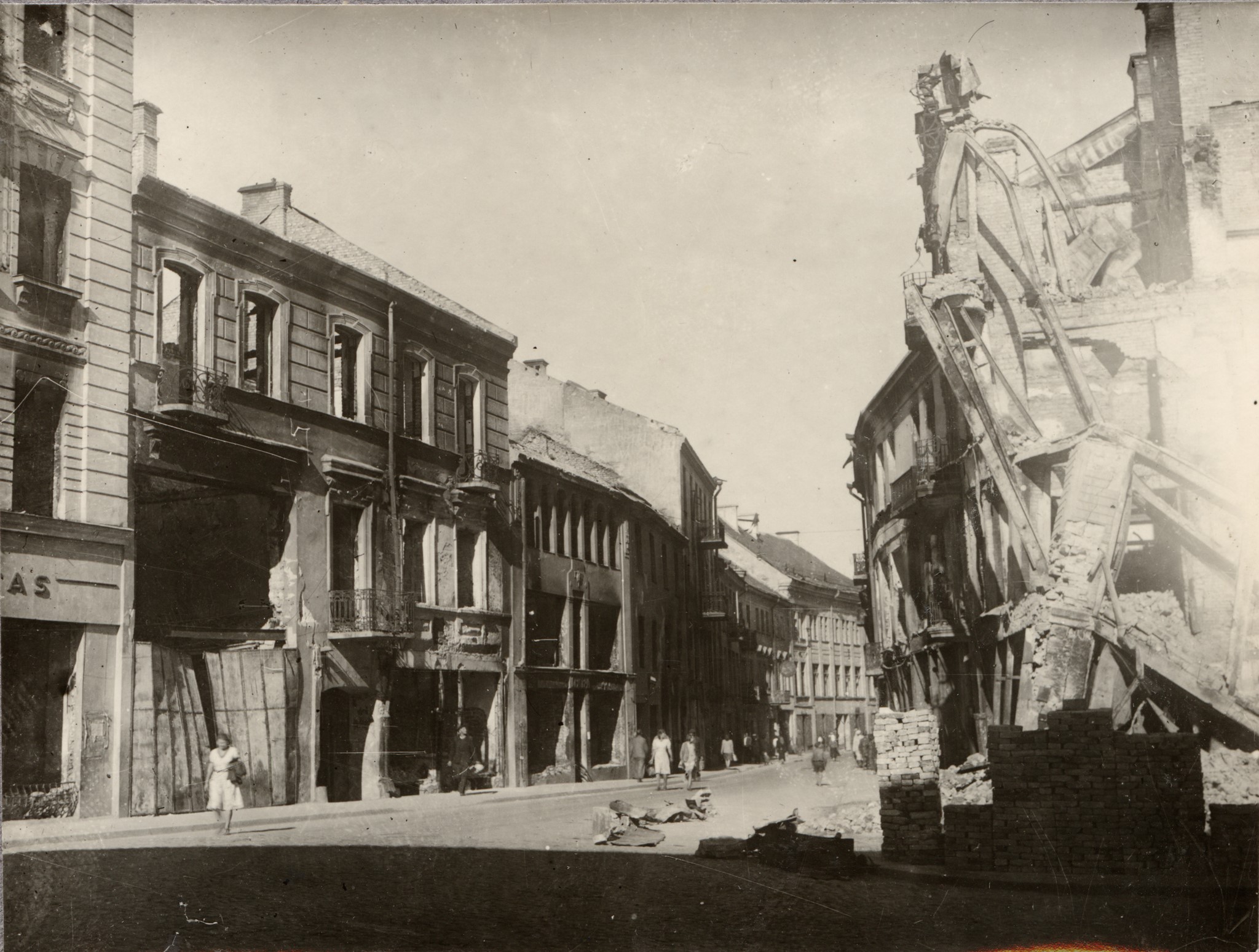 Rytinė Vokiečių gatvės pusė ir jos visas užstatymas sovietmečiu buvo nugriautas. Kairėje sudegę namai (du pirmieji kairėje) tai pat nugriauti po karo