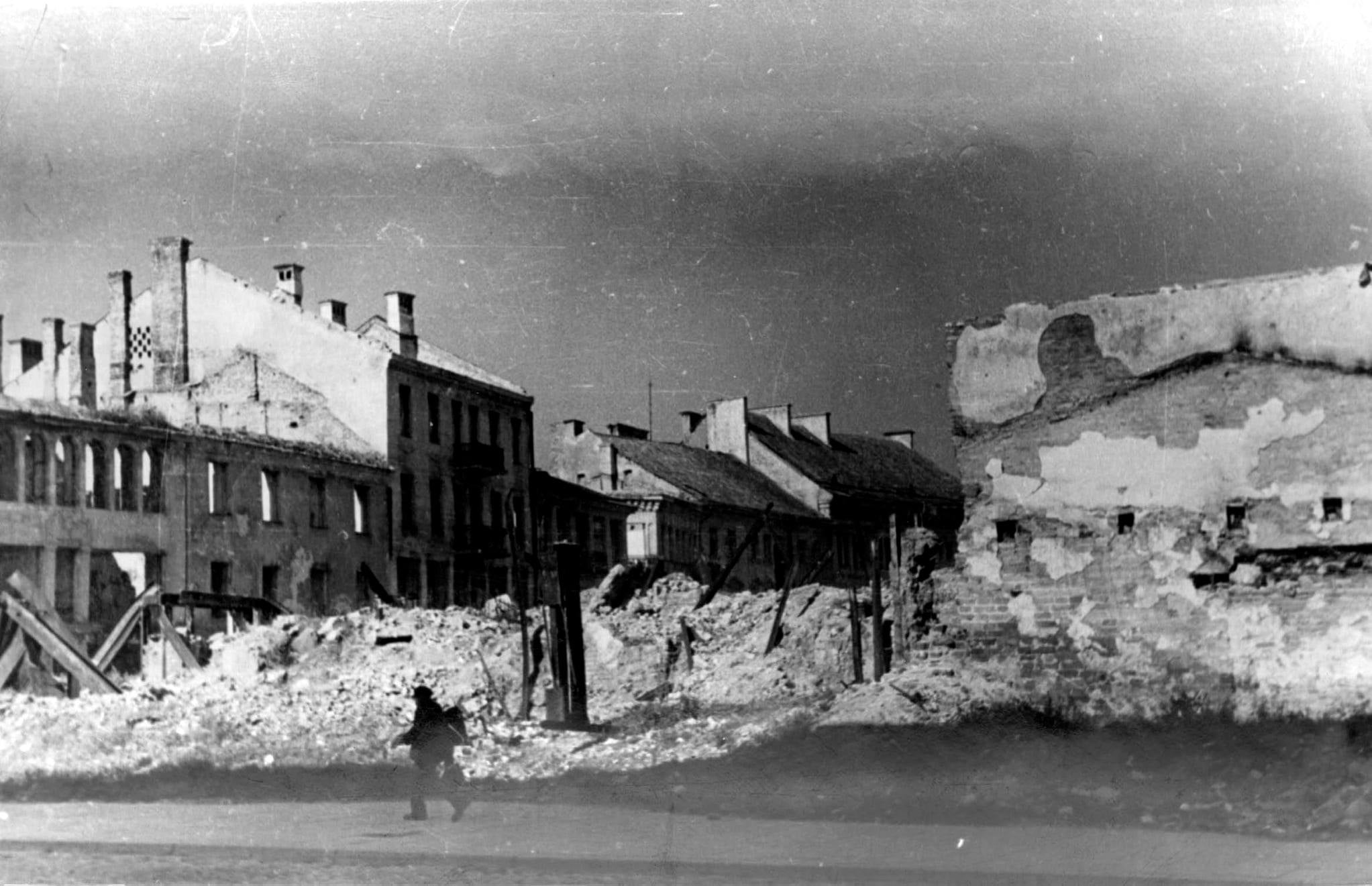 Nuotraukos dešinėje jau nugriauta vakarinė Vokiečių gatvės pusė.
