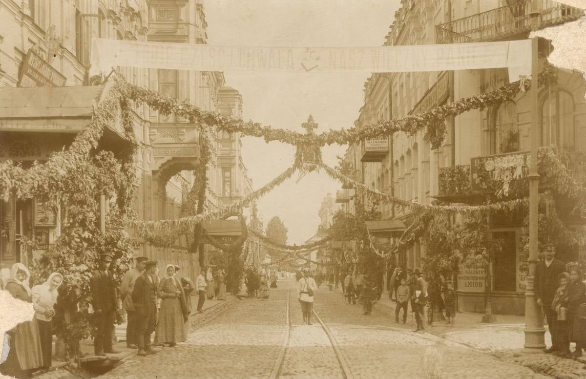 Vilniaus (Vilijos) gatvė, papuošta Švč. Kristaus Kūno ir Kraujo šventei. XX a. 2 deš. Fot. Vladislovas Hrinevičius